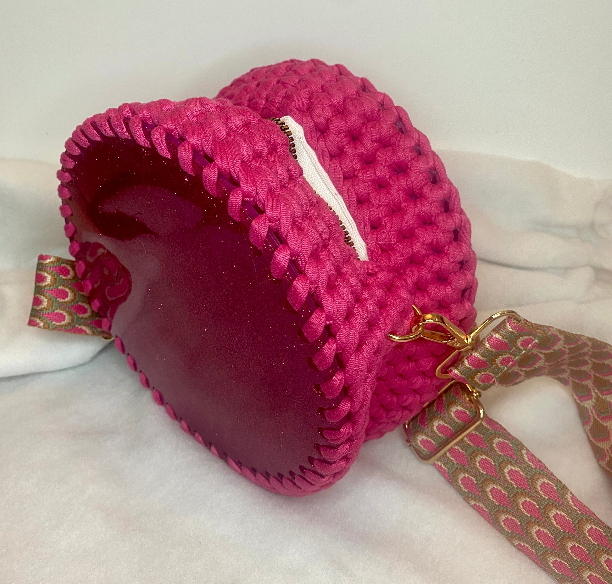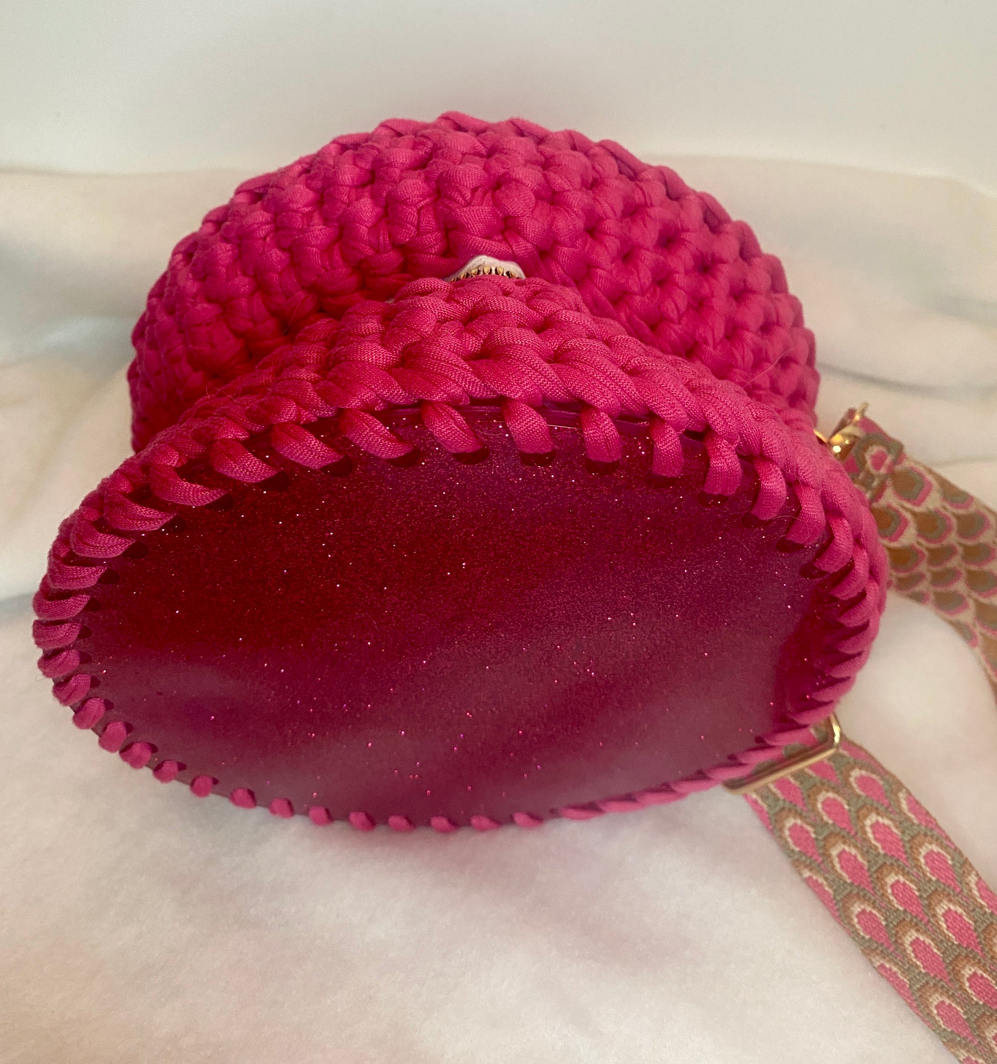 - Corps du sac réalisé en crochet. Composition : 100% Polyester